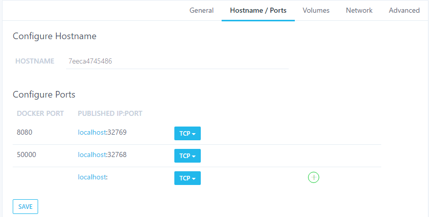 이후, General, Hostname/Ports, Volumes, Network, Advanced 등의 탭으로부터 정보를 확인하거나, 원하는 값으로 설정을 변경하여 사용할 수 있다.