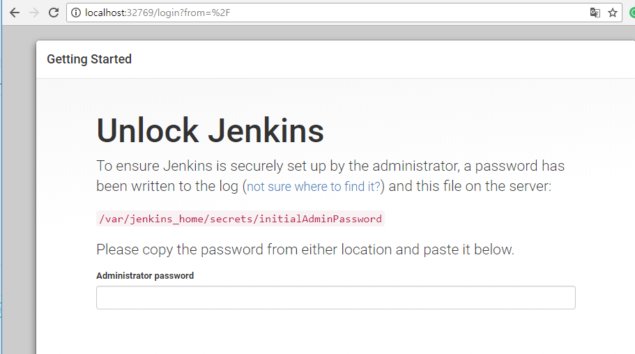 로컬서버의 32769 포트로 접속하면, Jenkins에 접속가능하다는 뜻이다.