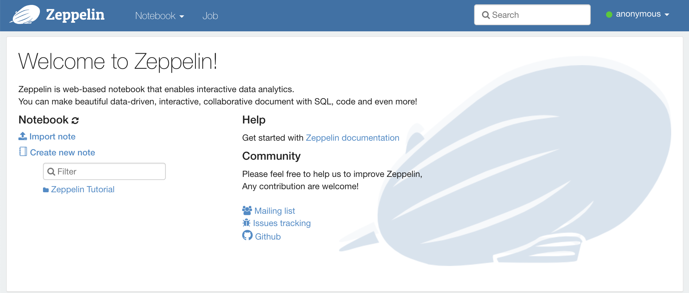 위와 같이 간편하게 zeppelin을 설치한다.