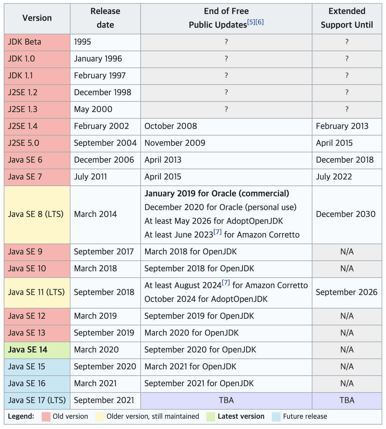 Java의 버전 릴리즈 주기가 6개월로 짧아지면서, 여러 버전을 설치하고 사용하고자 할 때 jenv를 사용하면 좋을 것이다. (Python처럼) 3년 주기의 Java LTS 버전을 감안하면, production에서는 현재로서는 Java11이 유용한 선택지가 될 것이다.