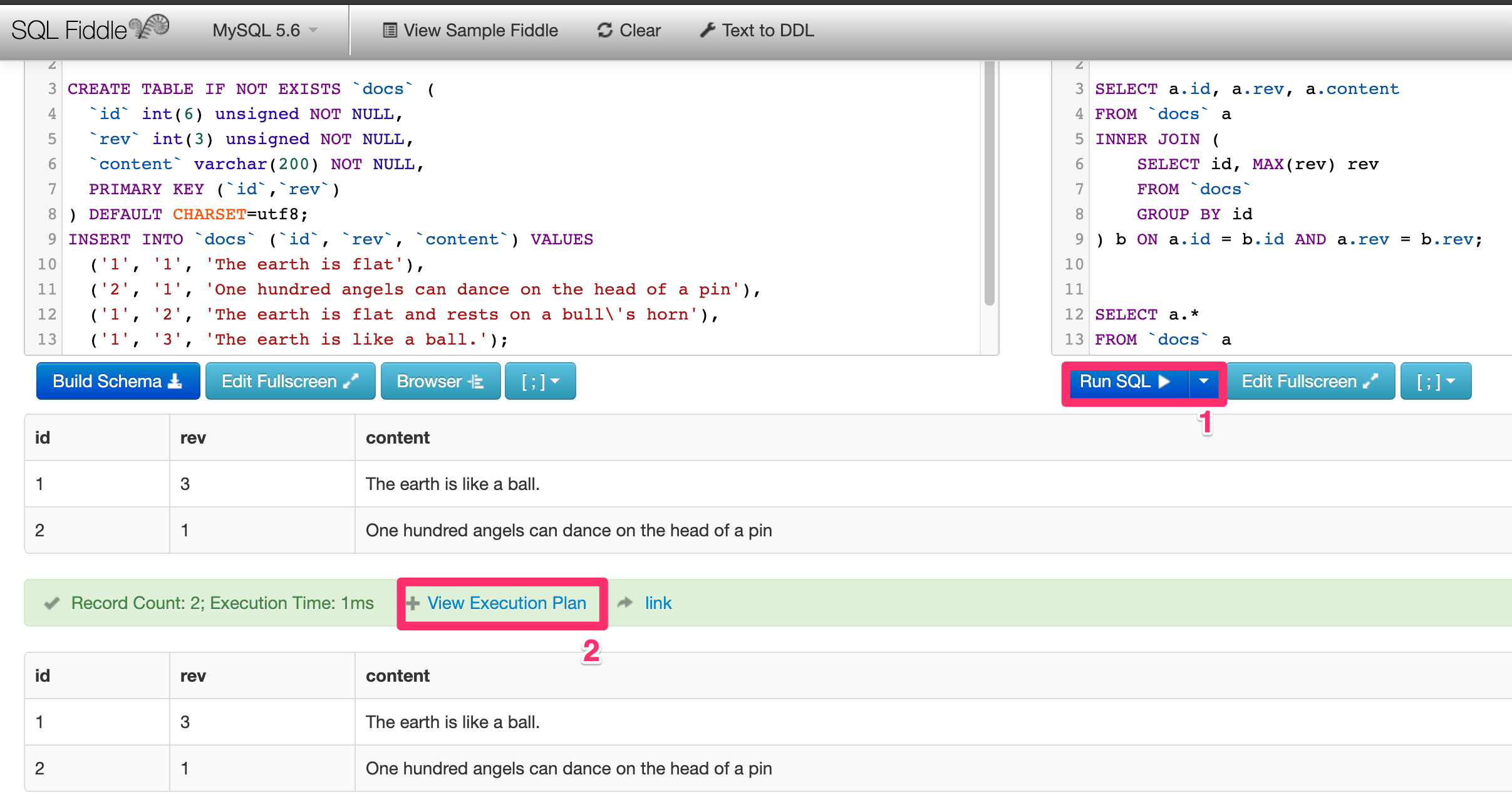 그러나, 그렇게 최신 버전이 아니어도 좋다면, sqlfiddle이 더 SQL query editor의 구색을 갖췄다고 본다.