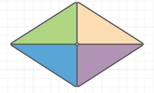 위의 마름모는 다음과 같이 네 개의 삼각형으로 나눠집니다.