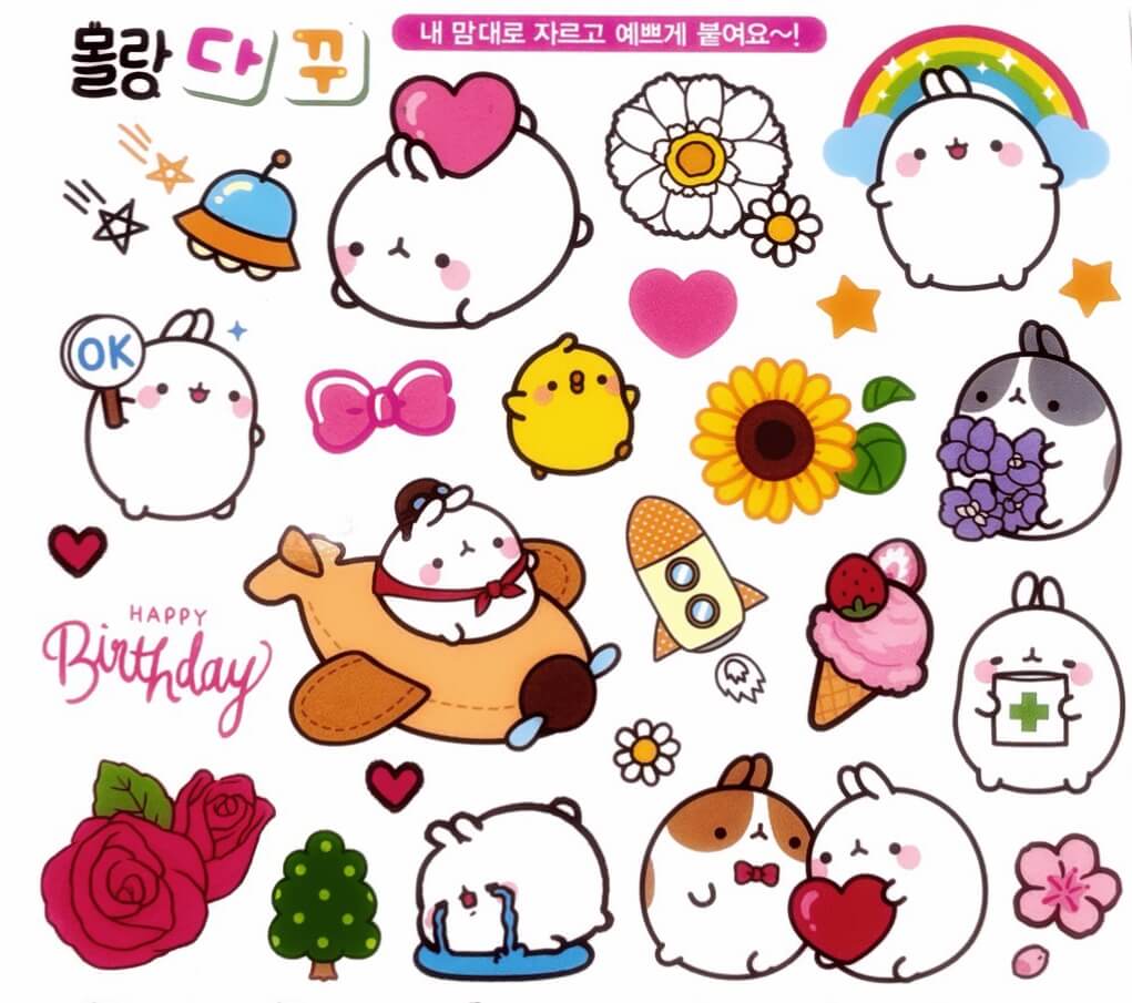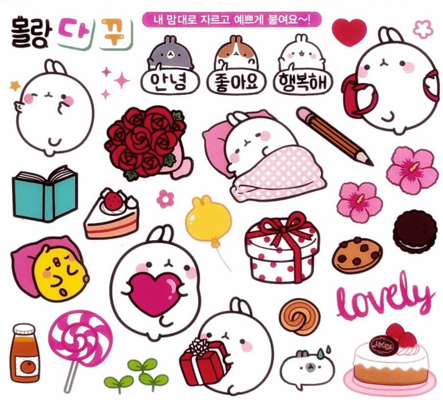 그래서! 아이들이 좋아하는 캐릭터로 다이어리를 꾸미도록 하여 흥미를 갖게 할 수 있습니다. 어린이들을 딱딱하고 재미없기 딱 좋은 다이어리와 친숙하게 해줄 수 있는 아이템이라는 것이겠죠. 게다가, 몰랑이는 어린이들 사이에서도 인기 캐릭터입니다. 문구점에서도 어린이들이 즐겨 찾는 캐릭터 상품이예요. 비단 다이어리가 아니더라도, 어린이들 사이에서는 이미 필수 아이템격입니다.