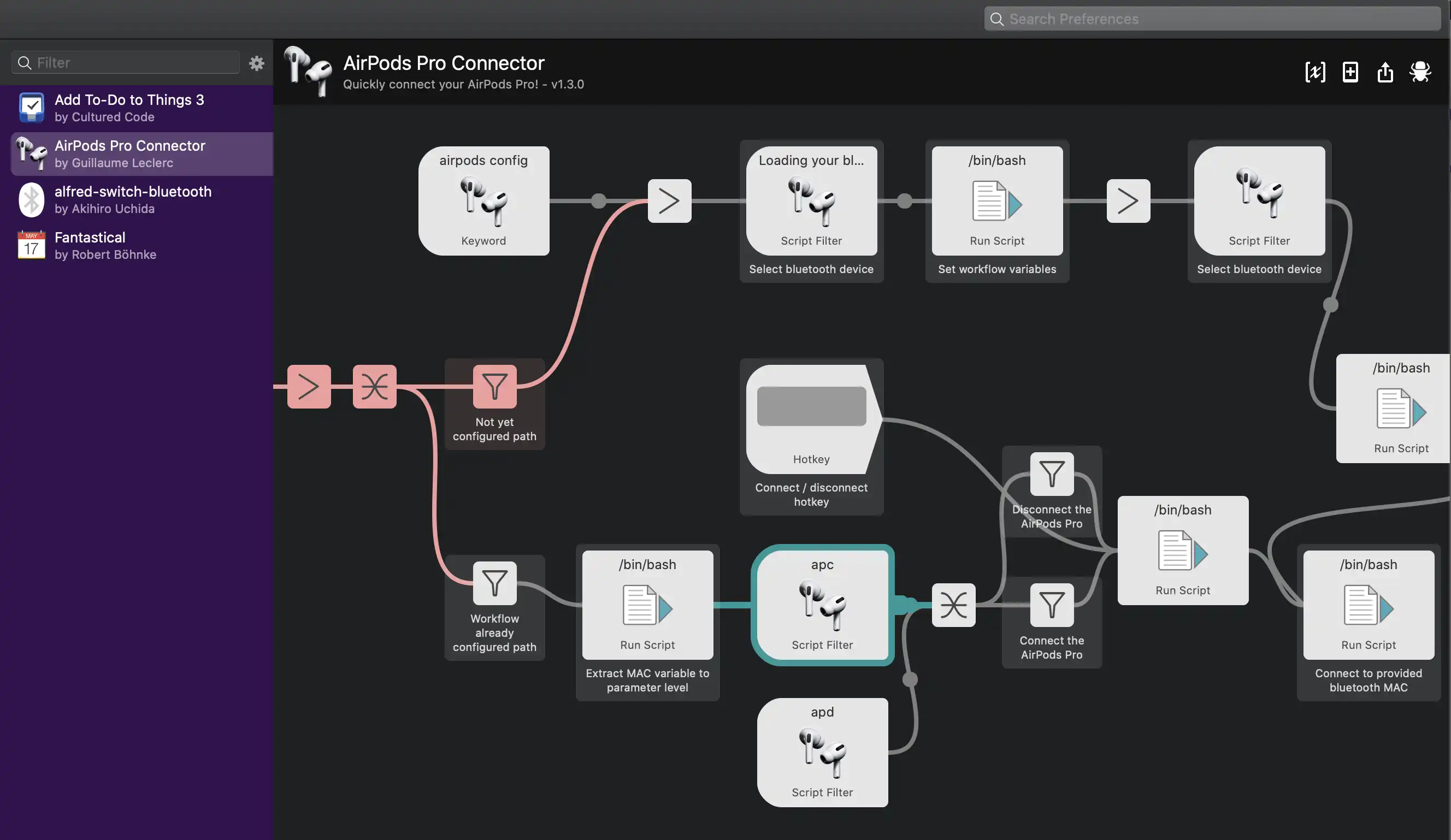 https://github.com/godbout/alfred-airpodspro-connector/releases - 링크에서 workflow 파일을 다운로드한다.