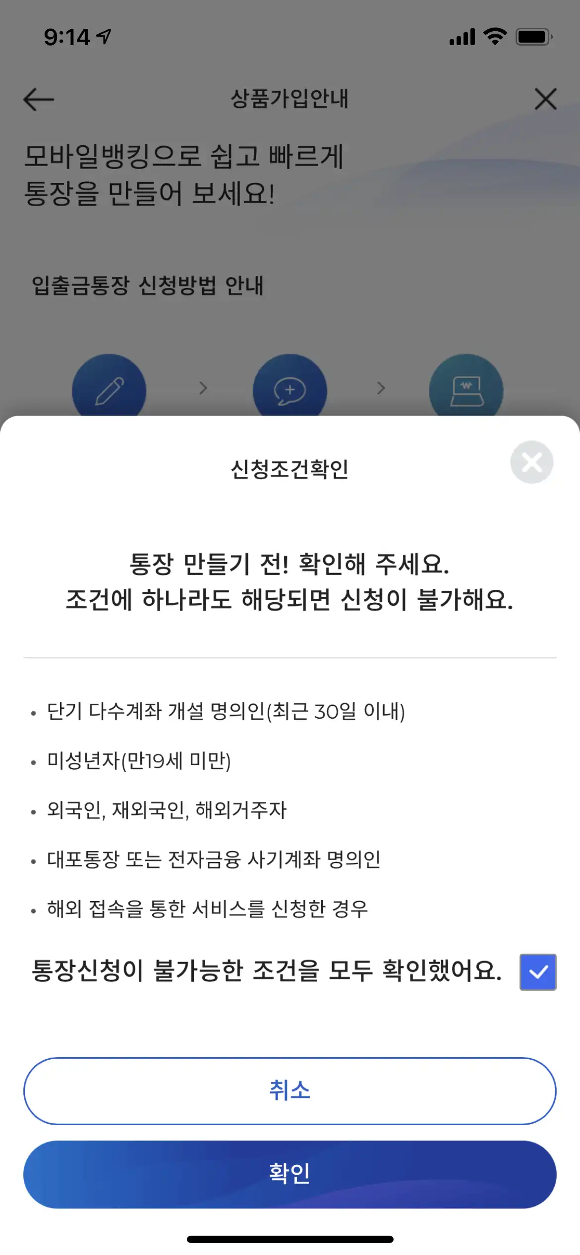 - 원화 통장 만들기 (앱 다운로드 설치 후, 실행하면 안내됨)