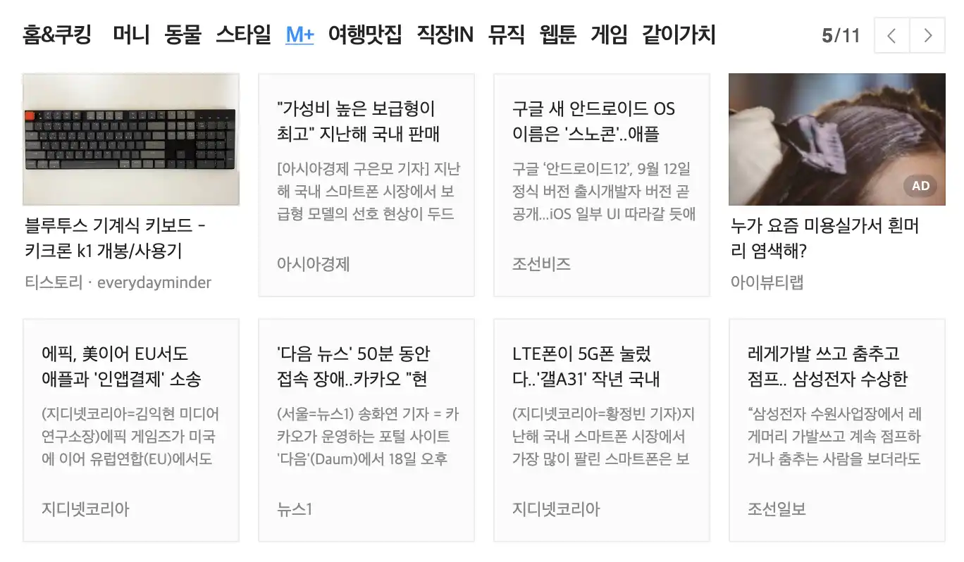찾았습니다. 처음에는 이 화면에 뜨더라고요. M+ 탭에 위와 같이 노출되었습니다. 사람들이 이 화면을 클릭해서 들어오고 있더라고요. 그런데, 오래 띄우주는 것은 아닌지 몇 시간 지나니까 다른 글에 밀려서 사라지더군요. 그리고, 다시 글이 노출된 곳을 발견했는데,
