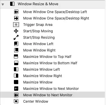 액션에서 Move Window to Next Monitor를 선택 지정하면 된다.