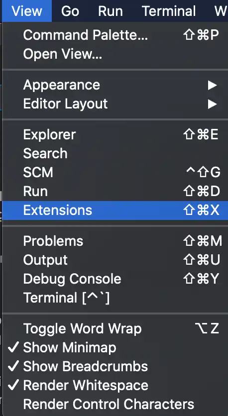 Shift + Command + X키로 extension 설치/관리를 할 수 있다. 검색 창이 뜨면, 아래의 두 플러그인을 찾아서 설치한다.