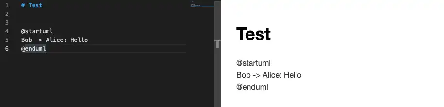 Boost Note(무료)에서는 기본적으로 제공되는 기능인데, Visual Studio Code에서도 비슷한 설정이 있지 않을까 싶어 설정 하는 방법을 정리한다. 목표는 Boost Note에서 작성하던 방법과 동일하게, Markdown 작성과 PlantUML 작성을 함께 할 수 있도록 하는 것이다.