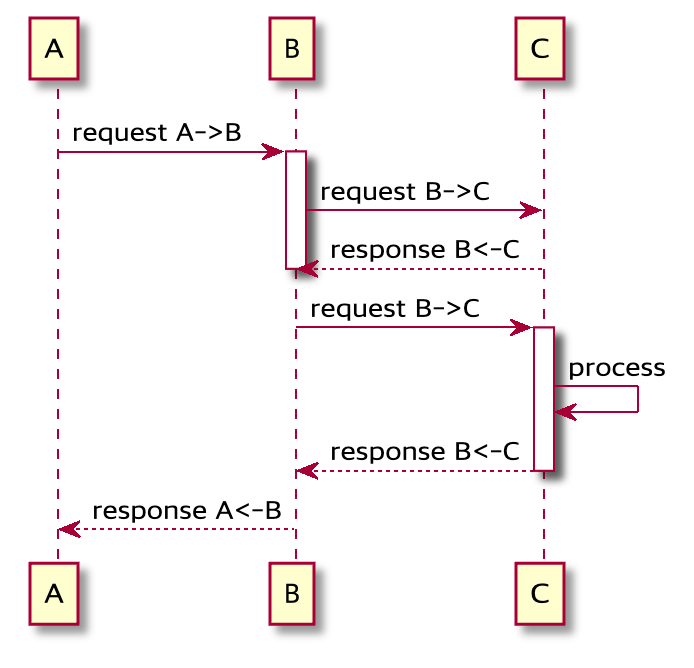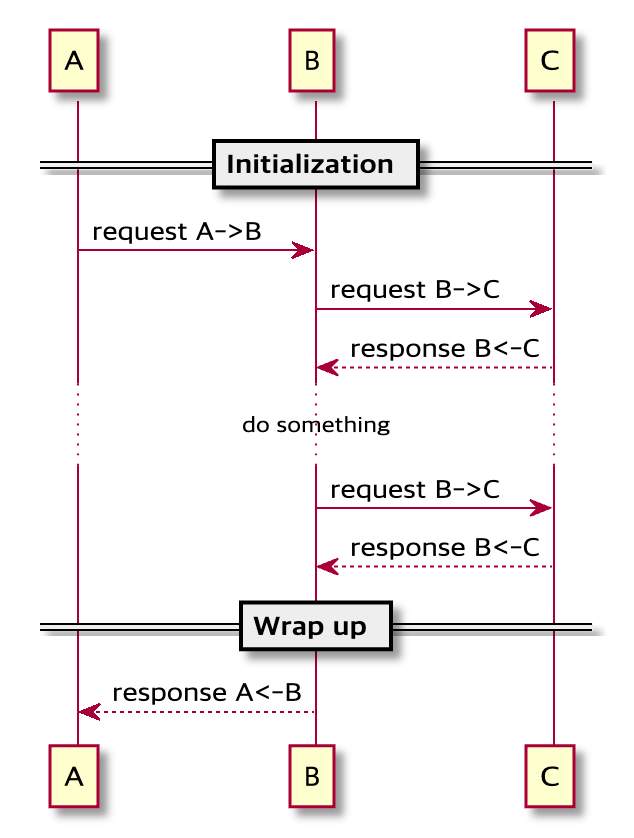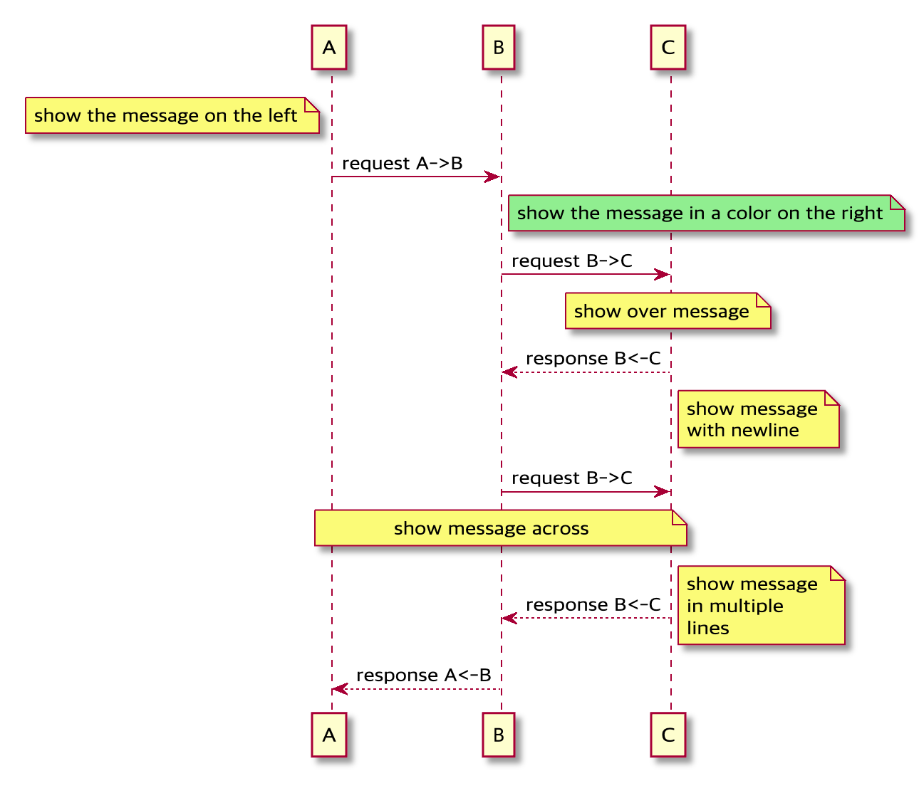 B <-- C: response B<-C note right of C: show message\nwith newline