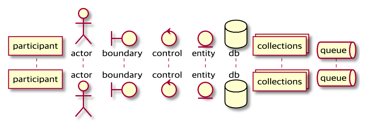 화살표를 보내거나 받는 요소를 참여자(participant)라고 한다. 별다른 설정을 하지 않는다면, 위의 문서에 작성한 순서대로 좌에서 우로 참여자들이 배치가 될 것이다. 그러나, 막상 그림을 그려놓고 보면, 노출되는 순서를 강제로 제어하고 싶을 수 있다. 참여자와 관련된 설정은 다음과 같다.