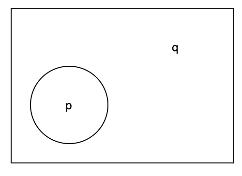 = p에 속하면, q에도 속한다. - $ \neg q \rightarrow \neg p $