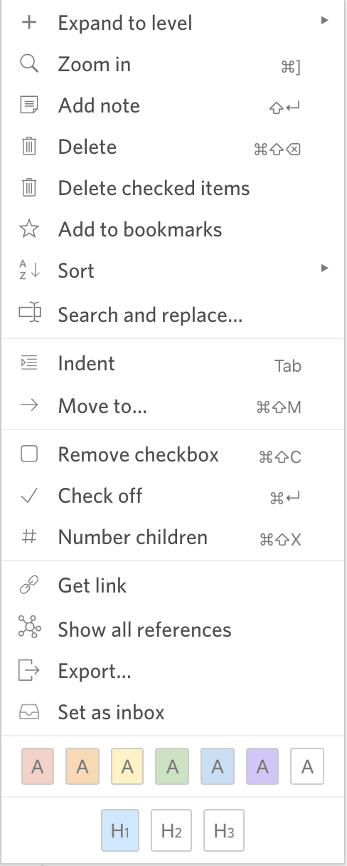 Workflowy가 제공하는 기본 기능은 Dynalist도 지원한다.