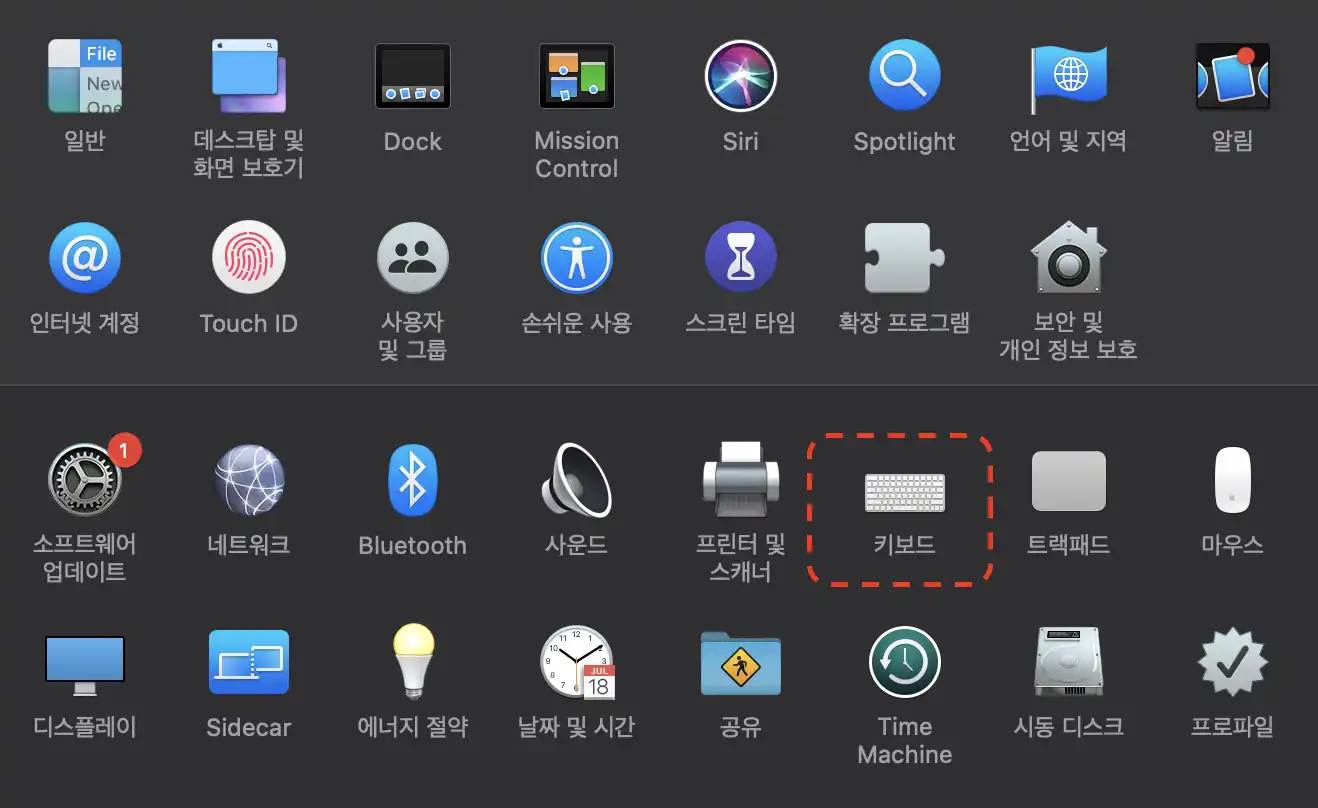 키보드 자체적으로 윈도우즈 모드와 맥 모드를 설정할 수 있는 키보드도 있지만, 그렇지 않은 경우라면 시스템 환경설정 > 키보드를 선택하여 다음과 같이 설정을 변경해 보자.