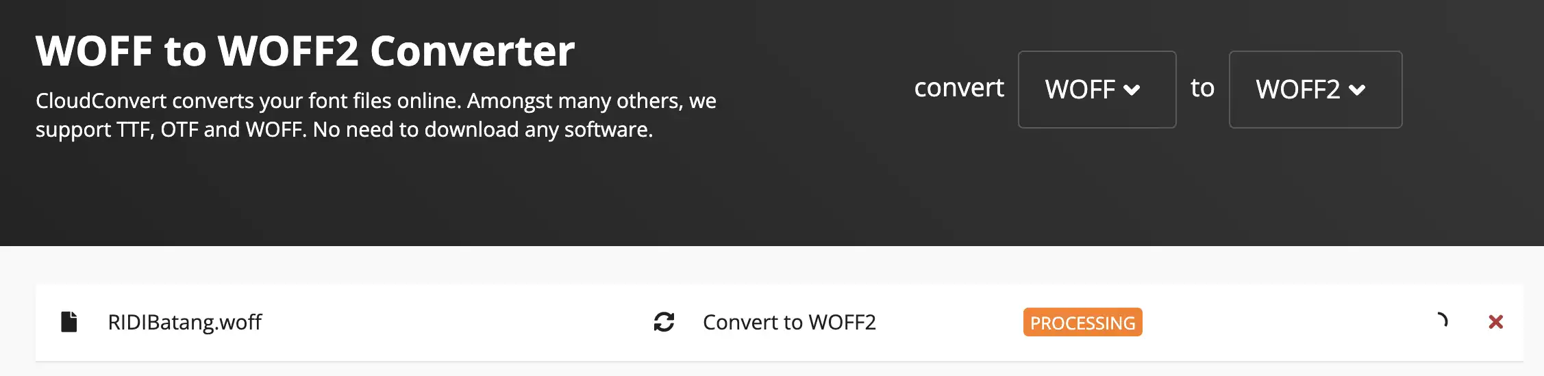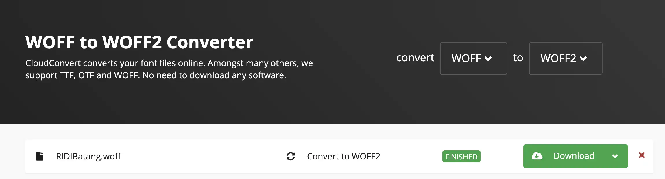 WOFF -> WOFF2 컨버터 사이트를 사용하여 용량 줄이기