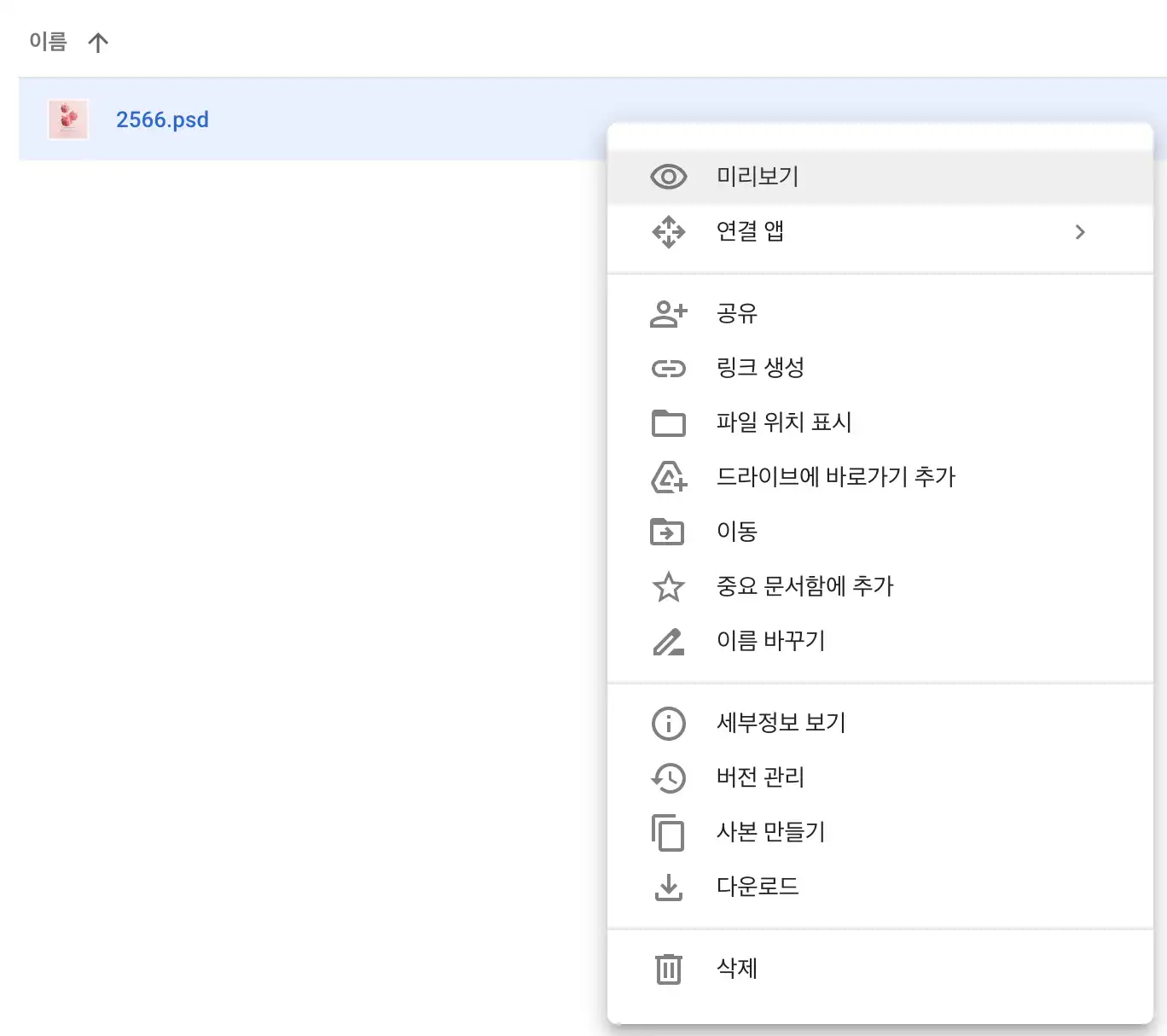 만약, PSD 파일을 구글 드라이브에 업로드 한다면 윈도우즈/ 맥 사용 여부와 관계없이 구글 드라이브 자체적으로 미리보기가 가능합니다.