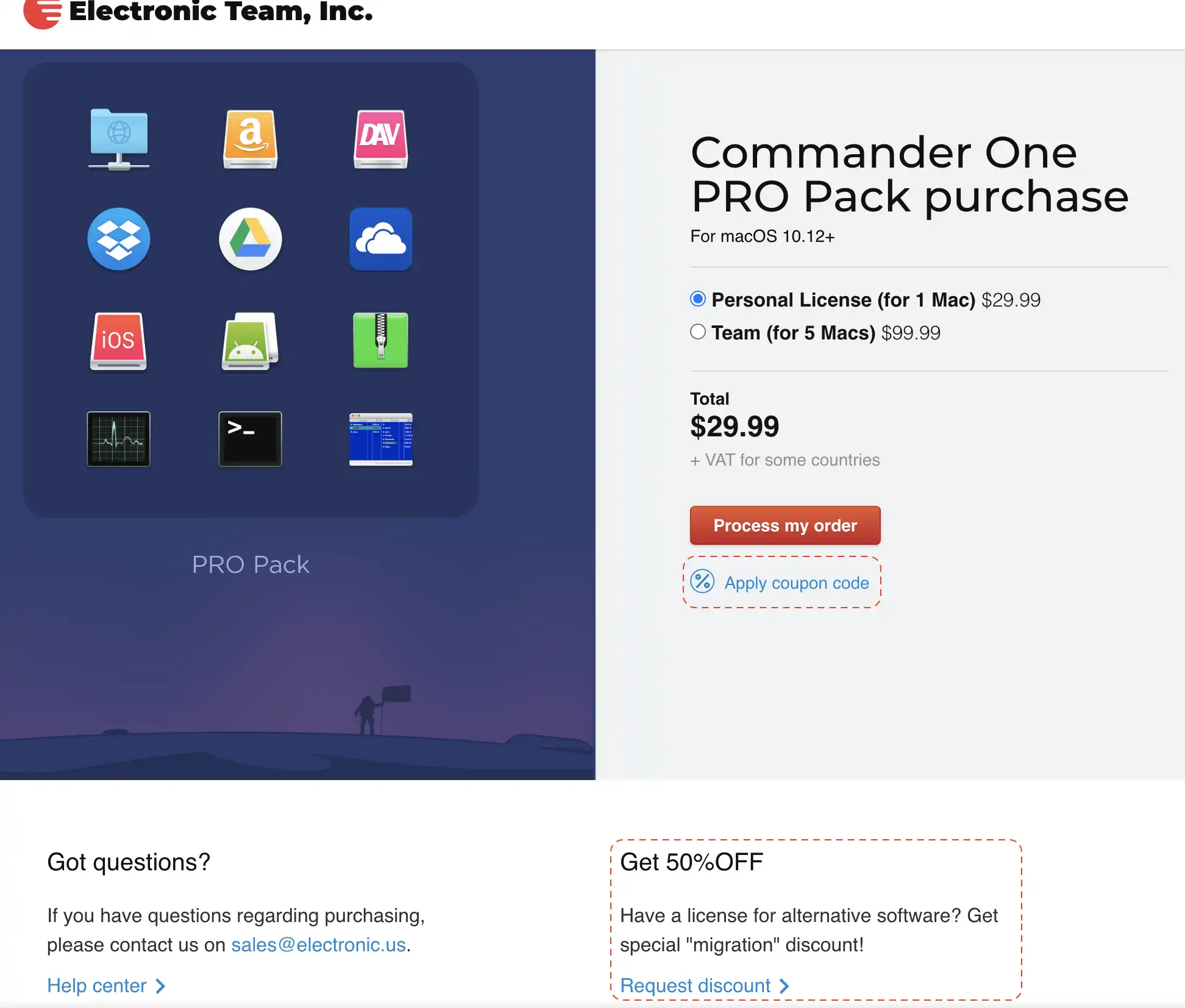 Commander one pro를 구매하기 위해, 공식 홈페이지로 가보자.