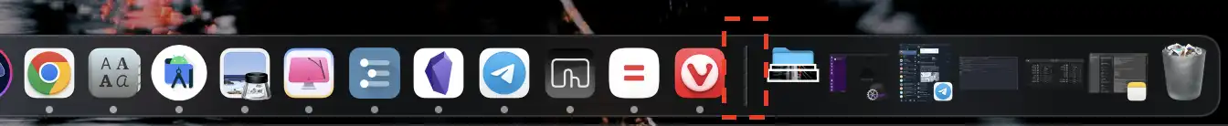 Docker의 휴지통 메뉴 부근을 잘 살펴보면, 세로 선이 보인다.
